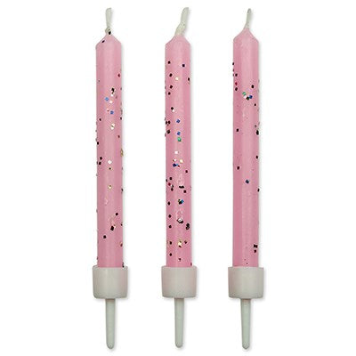 PME Pink Glitter Candles 10pcs